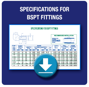 BSPT (British Standard Pipe Thread) is very similar to the NPT with one important difference, the angle across the flanks of the threads. If you were to slice the fitting in half, long ways, and measured the angle from the root crest to root, it would be 55 degrees instead of 60 degrees, as it is for NPT. A NPT male adapter will fit into a BSPT fitting or vice versa, but they will not seal properly. The BSPT fitting is most popular in China and Europe and is rarely used in North America, unless the equipment to which it has been imported needs the BSPT fittings to finish any assembly.